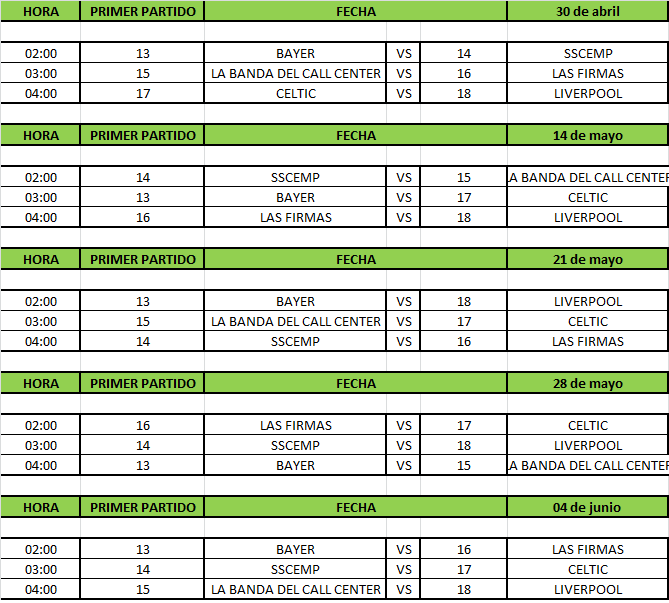 Tabla de Posiciones